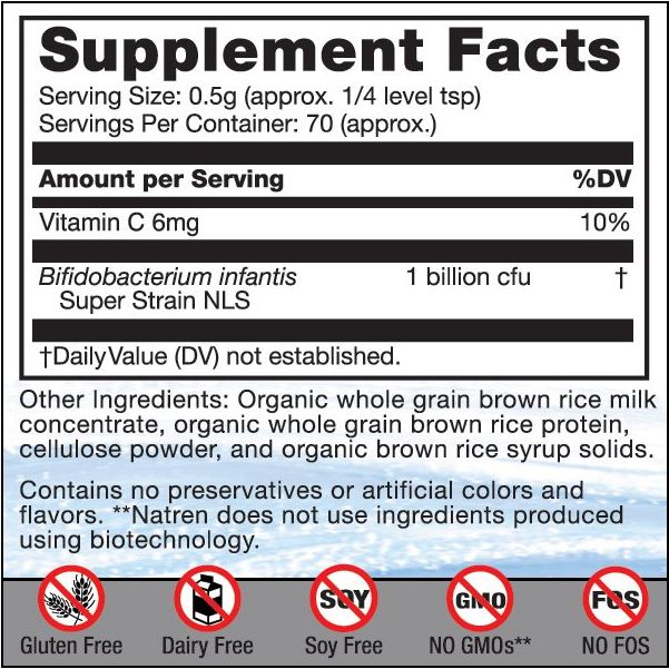 Bifidobacterium infantis je najkorisnija bakterija koja prevladava u probavi zdravih beba. Kod poroda carskim rezom bebe ne primaju ovo "cjepivo" korisnih bakterija. Ovaj se proizvod može davati počevši od prvog dana života. Pomiješati 1/4 ravne žličice (0.5 grama) - postupno doći do te doze tijekom nekoliko davanja - s nekloriranom vodom ili izdojenim mlijekom u glatku rijetku masu. Dati bebi na čistom prstu ili nanijeti na bradavicu prije dojenja. Za jednogodišnjake pomiješati s vodom, sokom bez puno kiseline (npr. jabuka, grožđe), ili jogurtom.