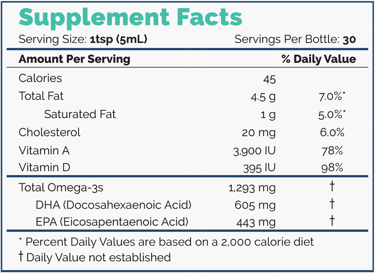 Sastojci: Sirovo ekstradjevičansko ulje jetre divljeg bakalara (plus tragovi ružmarina i prirodnog vitamina A u svojstvu antioksidansa).