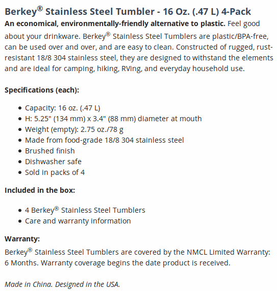 Berkey Inox čaša 0,5 L (set od 4 komada)